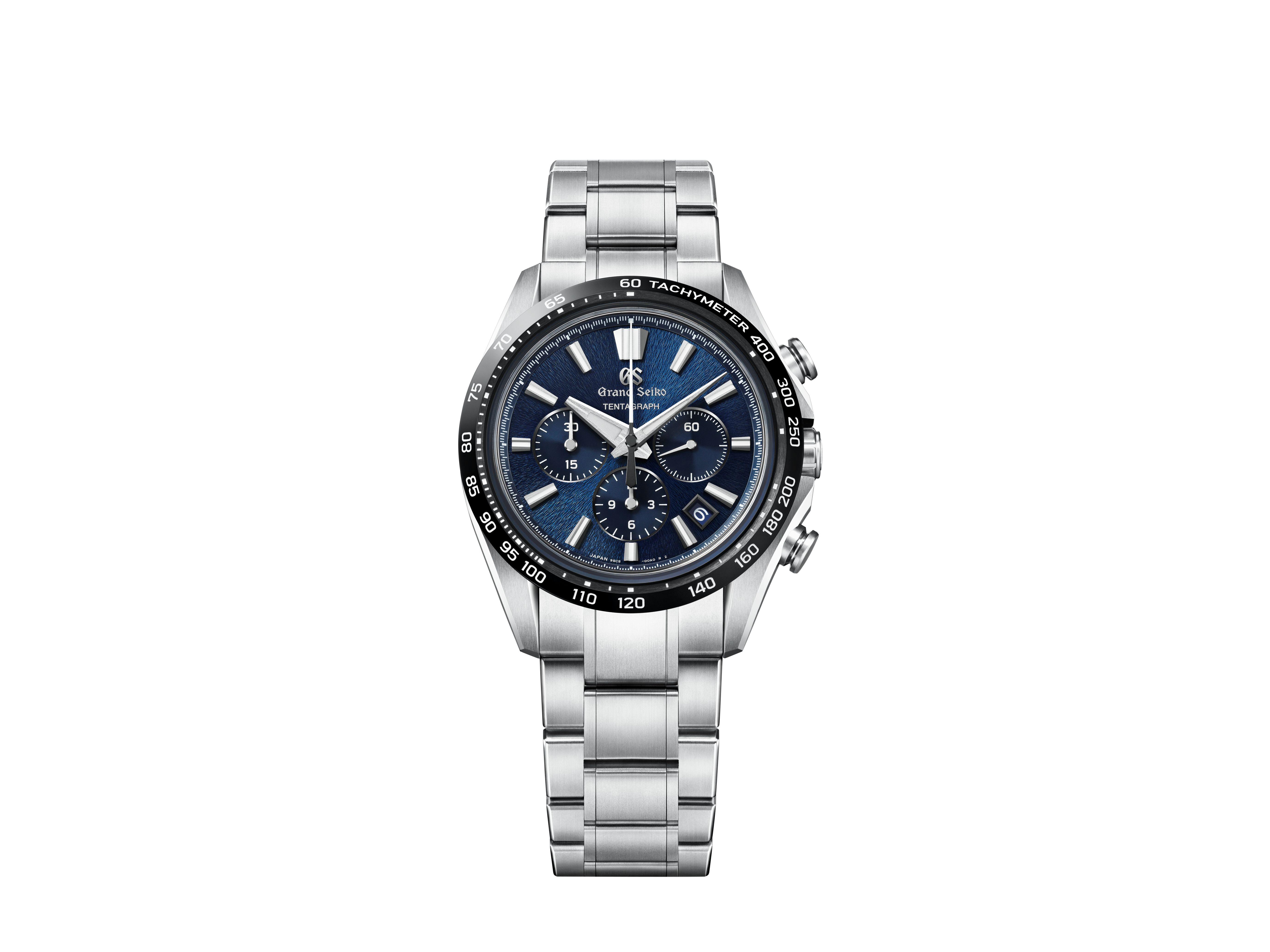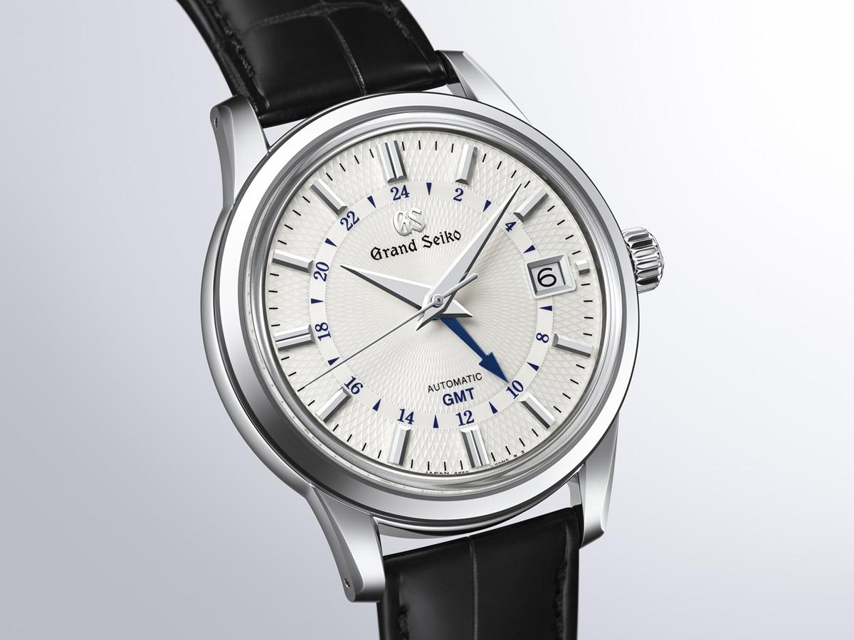 GMTの24時間表示部分の仕上げを変えることで立体感を生み、ホワイトのダイヤルに映えるテンパーブルーのGMT針が、爽やかなアクセントを添えます。