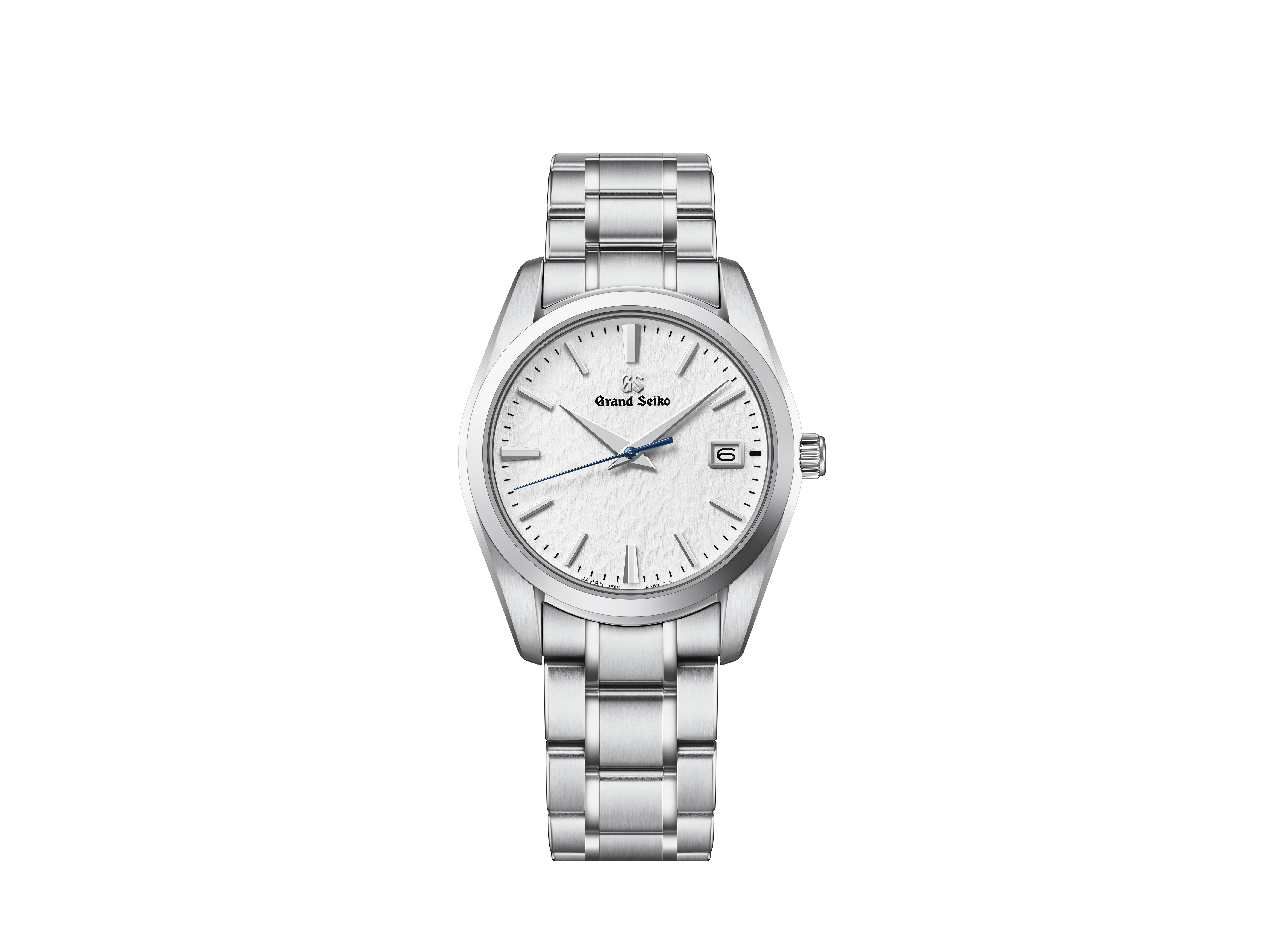 「グランドセイコースタイル」が確立される前、1960年に生まれた初代グランドセイコーの趣を今に伝えつつ現代的なアレンジが施されたケースデザインは、どの角度から見ても柔らかくあたたかなラウンドフォルム。一見シンプルな造形のかん足には先端に向かって広がる斜面が与えられ、ザラツ研磨を経て生み出された歪みない鏡面と繊細な稜線が際立ちます。匠の技によって生み出されたケースの美しい輝きとほんの一味の緊張感が、クラシックな趣の中に気品のある洗練された印象を加えています。